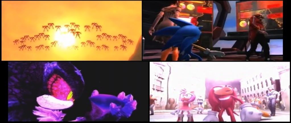 Finally, there's Shadows story. Apparently while on a mission with Rouge, they steal some magical artifact known as "Scepter of Darkness", and after a struggle it gets shattered and a monster known as Mephiles is freed, who takes on Shadow's appearance (ooh... see what they did there!)... some time travel... and searching for the Chaos Emeralds... and meeting with Sonic and Silver... It's really cluttered... and really boring.