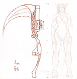 Day 2 has me designing a weapon for one of my characters Skye Valken. It's a beam-scythe/grenade launcher combo.