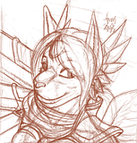 This one was borne out of frustration. I had an idea in my head that I couldn't get right, so I sketched this out quickly to make up for it. Ailís sitting in a lotus position.