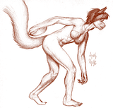 Got back into my groove on this day. Used a photo of a statue of a nude male Olympic discus thrower to draw a female squirrel lady doing the same.
